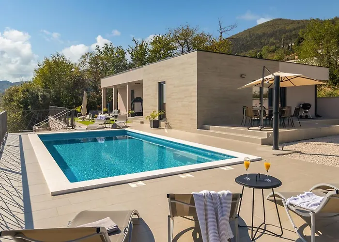 Villa Castanea oferuje pełnowymiarową kuchnię, a także jadalnię i jadalnię na świeżym powietrzu. Goście mogą również skorzystać z czajnika elektrycznego, lodówki i szklanych naczyń, aby samodzielnie przygotować posiłek. Goście mogą zjeść posiłek w zaledwie 1 km stąd w restauracji Restoran Aurora Veprinac. Opcje transportu w okolicy obejmują dworzec Poljane 2 Centar A, w odległości 5-minutowego spaceru. Willa dysponuje tarasem, na którym można zrelaksować się po męczącym dniu, a także basen.